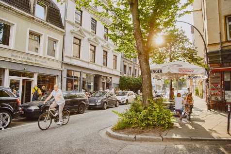 Option 1: cross the road and have a peek into Kaufrausch, Hamburg’s smallest department store, or, option 2: turn left and left again for a bit of a “Sex in the City” feeling the Hamburg way. Hegestraße is home to plenty of tempting little shops and boutiques. And on the way back to YoHo, you can drift along Lehmweg to soak up a little more of that unique atmosphere.